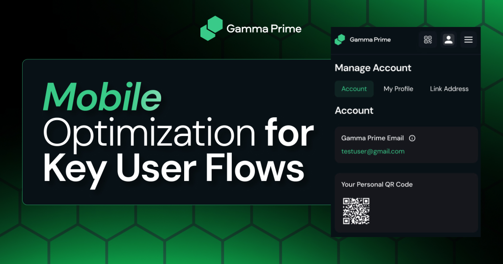 Mobile versions of the Sign Up flow, Questionnaire, and My Profile pages were developed and optimized. This ensures a smoother experience for users accessing Gamma Prime from mobile devices, reducing drop-off during onboarding and improving accessibility for global participants.